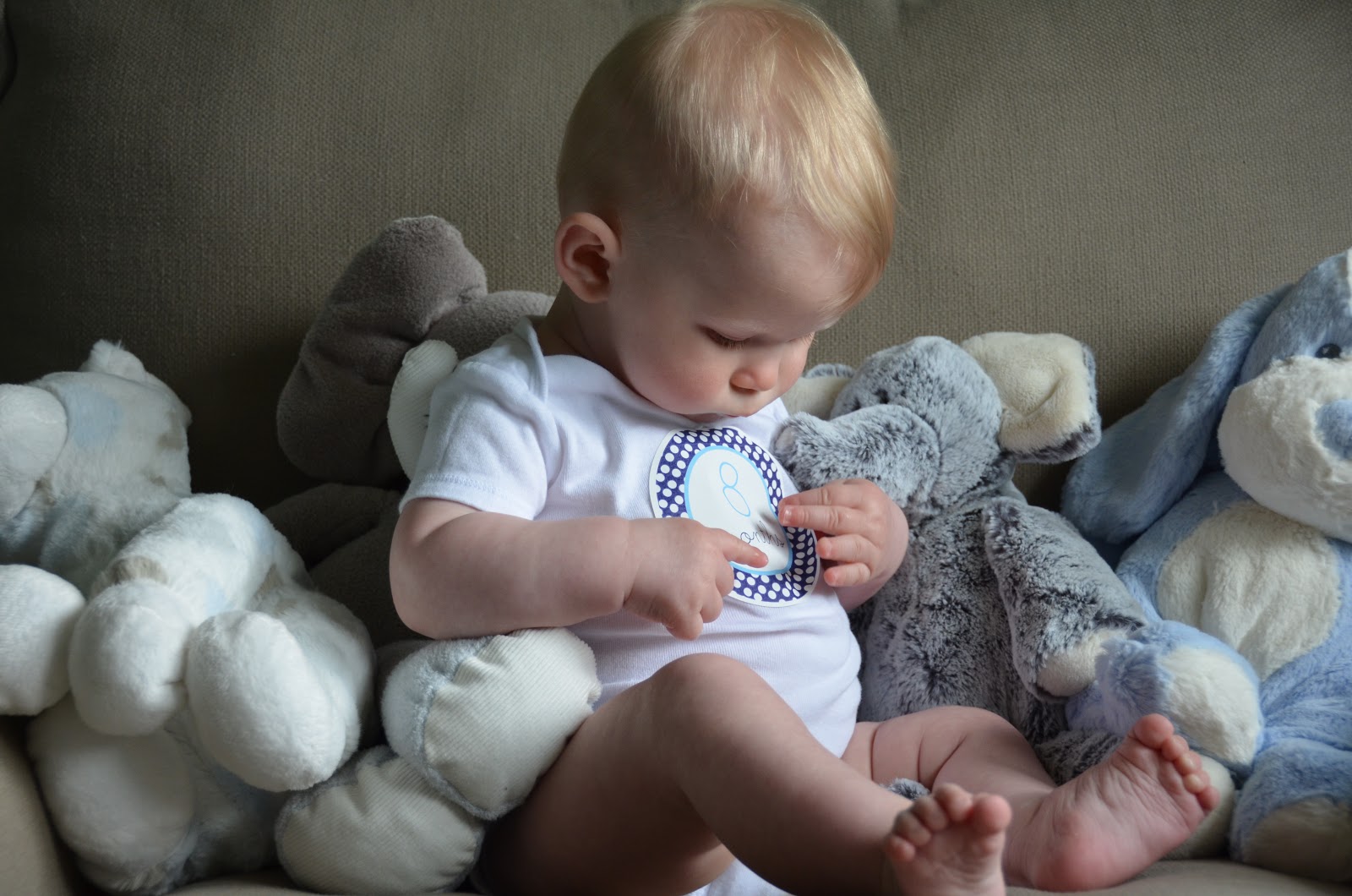 Teeth FOUR! His top two front teeth started breaking through just before 8 months and continue to work their way into Jackson’s mouth slowly but surely.